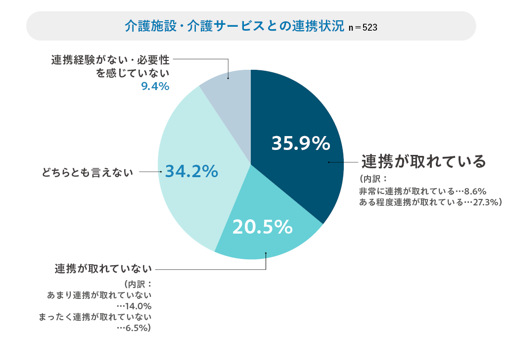 どの連携についても必要性を認識してはいるものの、顔の見える関係づくりや情報共有の難しさが課題と考えている人も少なくありません。今後さらに高齢化が進む中、連携強化は地域医療の持続に欠かせないテーマといえるでしょう。